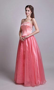 A-line Col en cœur Longueur ras du sol Organza Satin Robe de Ceremonie