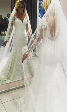 Trumpet/Sirène Col U profond Manche longue Dentelle